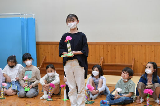 母の日に向けて今年は手作りカーネーションを制作しました。赤を基調とした花紙から大きさや花びらのギザギザを再現しながらお母さんへの感謝の気持ちを込めながら制作しました。