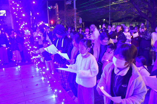 09日 12月 2025 大学点灯式 いろいろな場所でイルミネーションがきれいに輝きだす季節になりましたね。 私たちも大学のイルミネーション点灯式に参加しました。 普段とは違う場所での厳かな雰囲気に、お話をしてくれている先生や聖歌隊の方を静かに見つめていました。 外に出てイルミネーションを点灯する際には近くで見たい子やちょっと離れて全体を見たい子、保護者と一緒に見たい子などいろいろでした。 それぞれの思いで点灯式を味わうことができたようです。 tagPlaceholderカテゴリ: